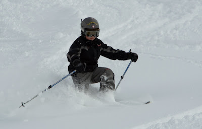 At least Auntie Sparkie is able to ignore the silly boys, and enjoy her own powder skiing.