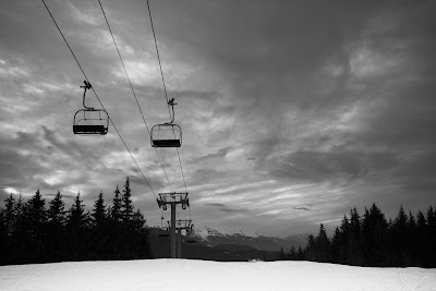 Over the last few days we've seen some amazing skies here in Méribel. Last week we had countless "bluebird" days and rising temperatures, bright sunshine with rich blue skies and alpine sunsets. But over the weekend and the beginning of this week we experienced some mucky weather. However the precipitation didn't dampen Chris's spirits and enjoyment of his annual skiing holiday.
