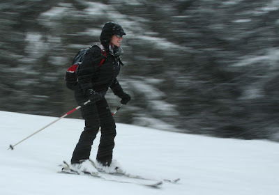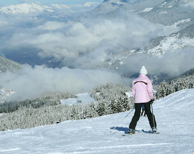 The skills develop to the point where the skier will then be in a position to be able to choose how to use these skills effectively. For example, Lisa (below) is nicely balanced, with grip, and can choose exactly where she wants to take her line down the piste by steering her feet and skis. So has Lisa been instructed on this piste, or been coached?