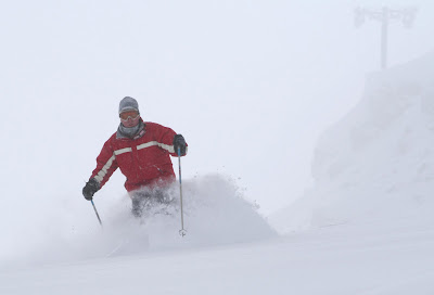 Mark, below, is very experienced with skiing on piste but wanted to improve off piste. He was coached on how to use his balance skills, his pressure skills and his steering skills to help him enjoy and master powder skiing in poor visibilty last winter.