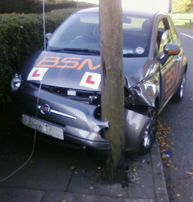 P.S. The other evening I was asked if I had experienced any accidents yet this year in the driving school car. "Fortunately not." I replied. The next day however, I met a colleague who unfortunately had; he shall remain nameless. Thankfully both Dave (oops, sorry) and his learner survived unharmed. Thanks Marie for this i-Phone photo!?!