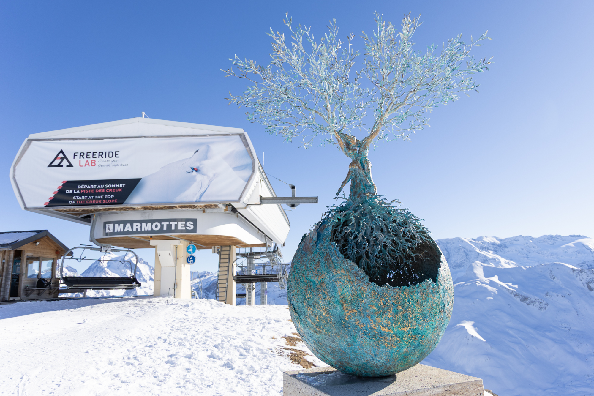 Regular skiers here in the 3 Valleys may be familiar with various pieces of mountain art found up and above Courchevel 1850. In recent years examples of 'King Kongs', 'Dark Knights', and even Salvador Dahli have featured among many other artists and sculptures. I hadn't really thought about art until reaching the top of the Suisses chairlift the other day. This time I was faced with a stunning new sculpture. Unfortunately there was no reference whatsoever as to what it was, and who by!?! Absolutely nothing. So later that evening I got digging online.