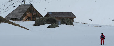 At 2,000 meters we ran out of snow to ski on: fortunately our ski touring boots can turn into 'rigid' walking boots from normal ski boots to help in such eventualities. How weird did it feel being in full ski kit, walking through fields of spring flowers, watched by bewildered visitors ?