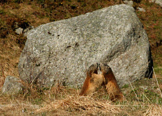 They are lovely little furry animals who hibernate over the winter, often underneath chairlifts, and pop out of their burrows from late April onwards. Some of them tolera